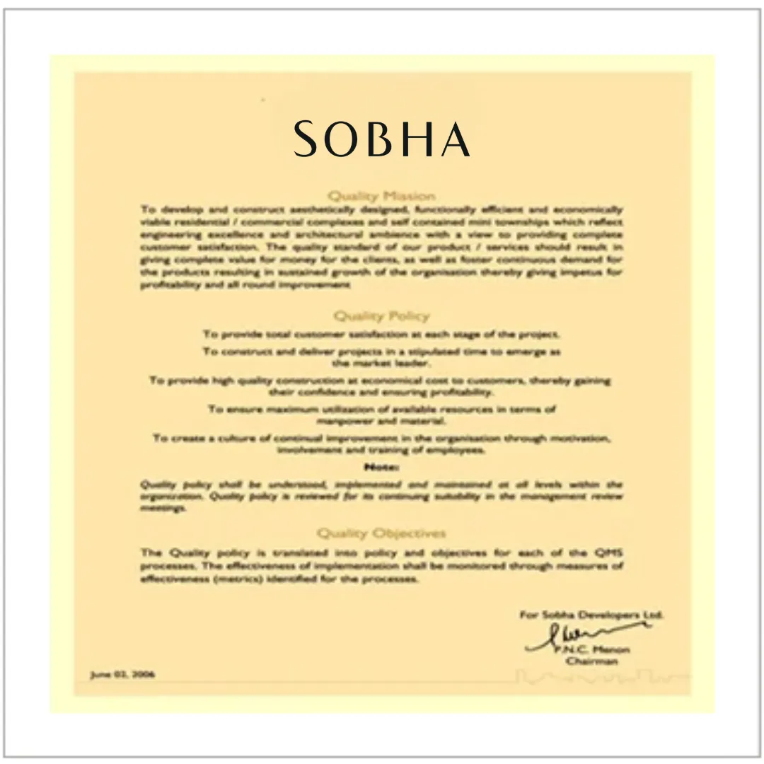 Our credibility is reinforced through industry certifications, quality benchmarks, and the trust placed in us by the Sobha Group and institutional clients.